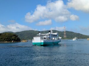 9月6日(土)は、仕事のため瀬戸港からフェリーに乗って松島に初上陸しました。(写真のフェリーは松島行ではないようです。)外から見る松島はとても大きく地続きのように見えました。ほんの10分ほどで島に到着。港から山の上にある風力発電所近くの携帯電話基地局までも10分ほどで着きました。当日は、帰りのフェリーの時間までに余裕がなかったので島めぐりはできませんでしたが、次に行くときは「日本一小さな公園」にも足を運びたいと思いました。