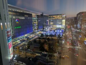 写真は、出張で宿泊したホテルの窓から見た博多駅前のクリスマスイルミネーションです。スマホを向けるたくさんの人たちを見て、電気の力で社会を便利に、より豊かにするために会社としてできることを模索し挑戦していきたいと改めて思ったところです。